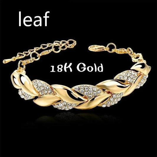 Bohemian Gold Bracelet | Rhinestone Leaves, Braided Chain