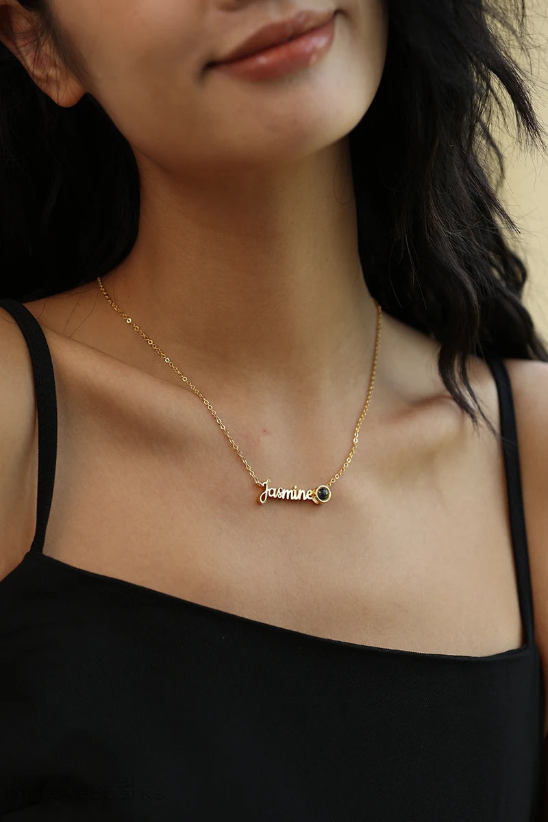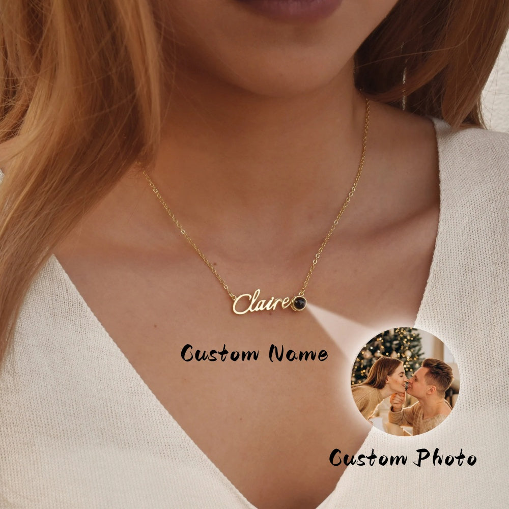 Custom Photo Necklace | Name Engraving, Projection Pendant
