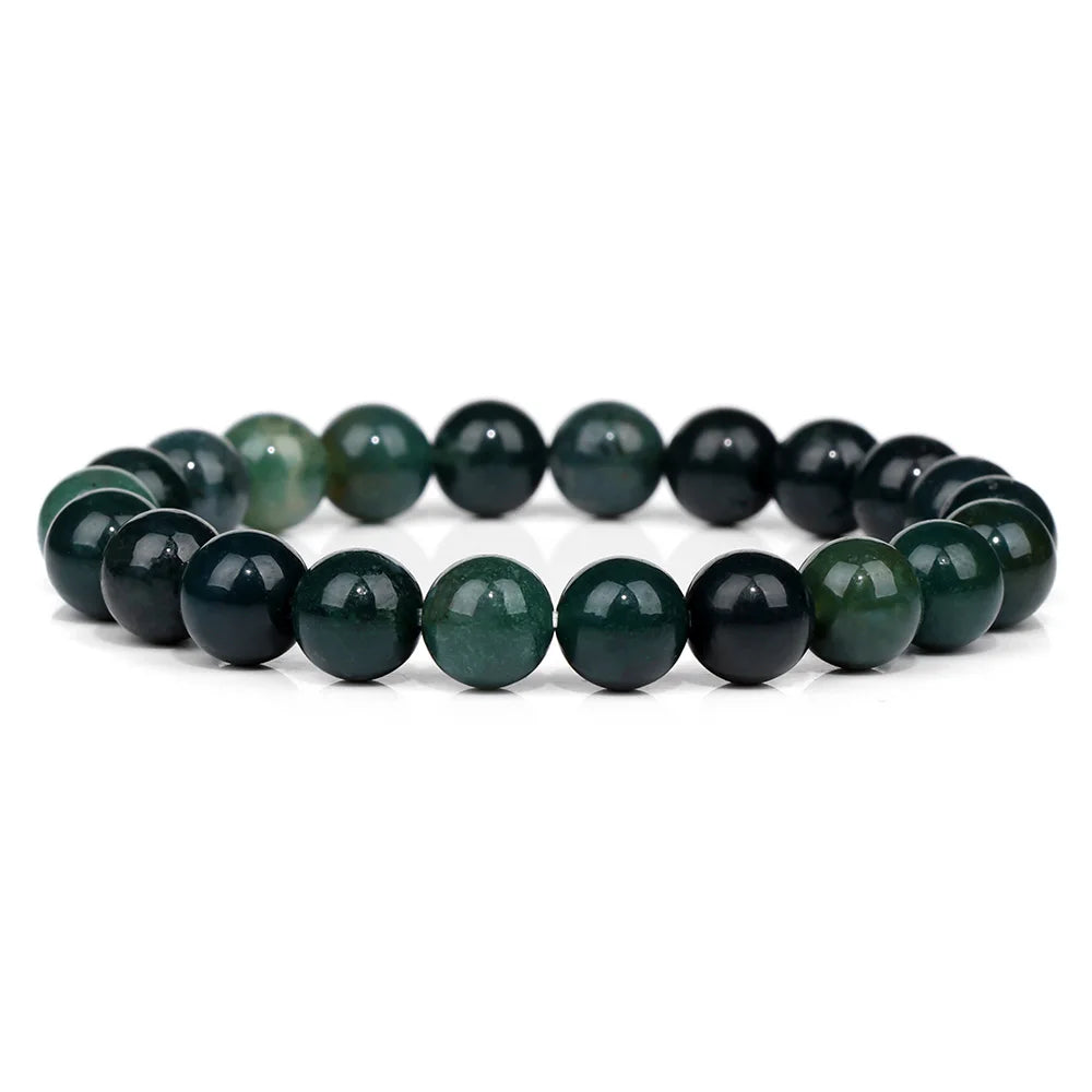 Each bracelet is made with real, natural stones like African Turquoise and Moss Agate, believed to promote balance, energy, and inner peace.