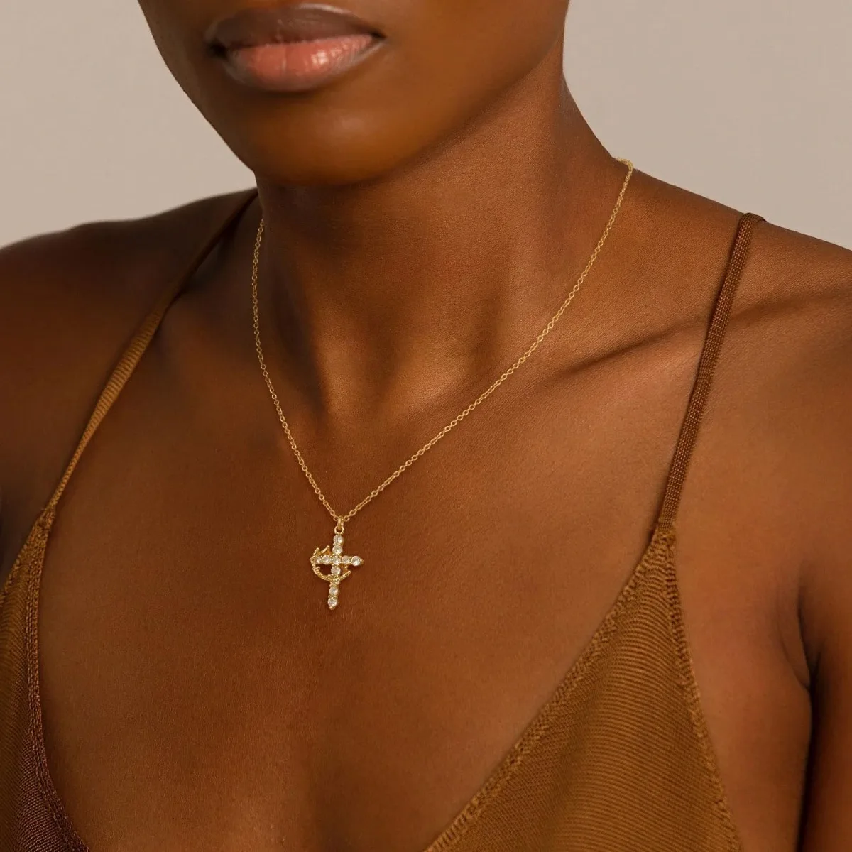 This gold cross necklace shines beautifully and feels light and easy to wear every day.